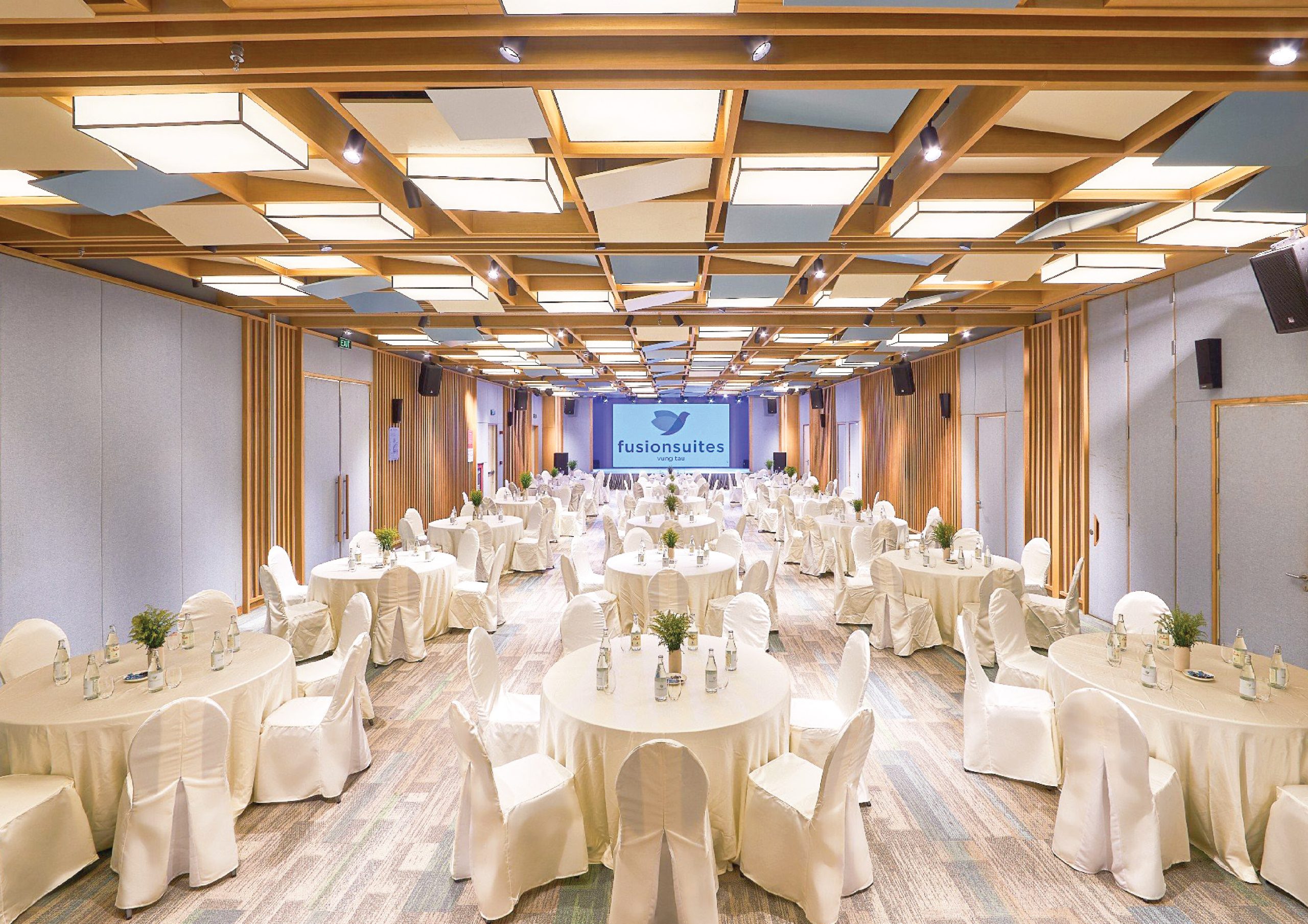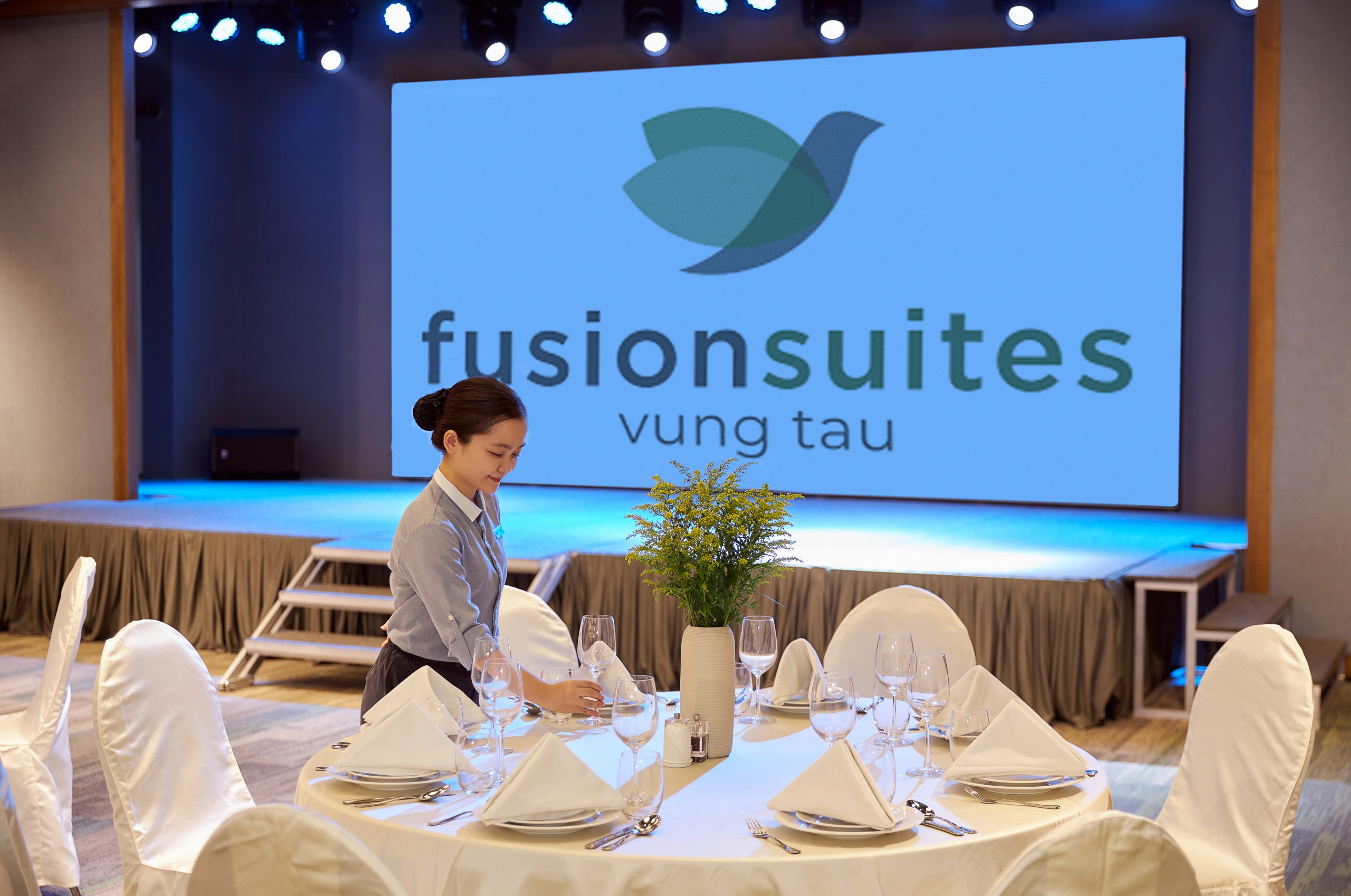 A stylish and memorable outdoor wedding celebration under the golden sunset sky and the whisper of ocean waves — right on the rooftop of Fusion Suites Vung Tau.